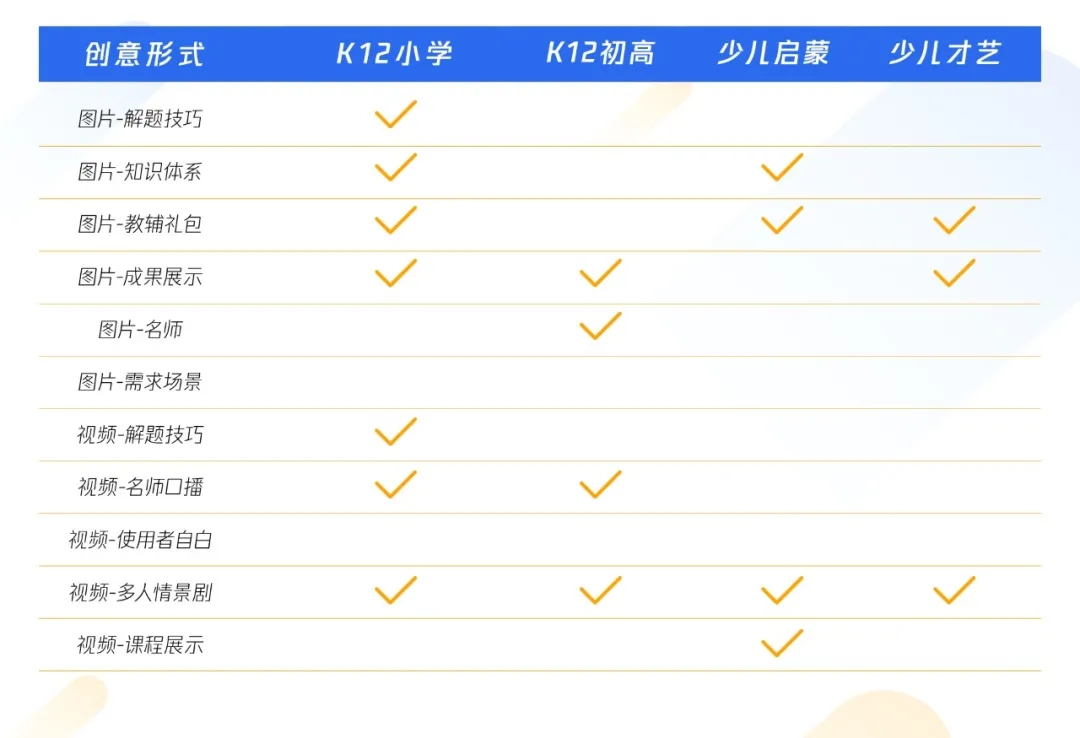 为了帮助教育企业快速掌握创意要点,下面重点梳理K12与学前教育行业主流卖点,并结合赛道特征提供创意建议,供大家学习与实操。